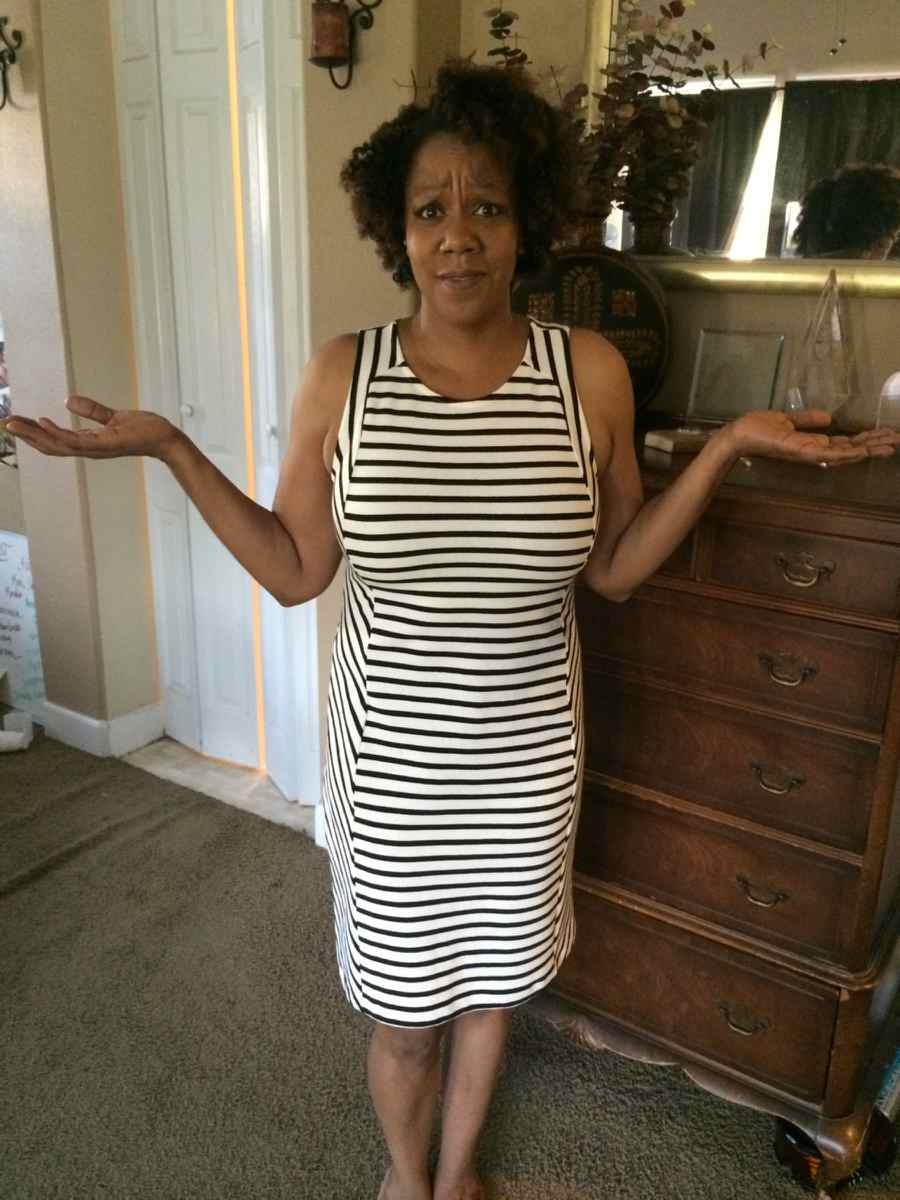 My sister purchased this cute (but sorta plain) dress from the clearance rack at Old Navy. She wanted my advice on how to spruce it up a bit. She planned on wearing the dress to an event where she would be the guest speaker. The engagement was a casual, summer brunch. So she needed to look nice, but not super fancy. Here’s what I recommended…. What do you think? 🙂